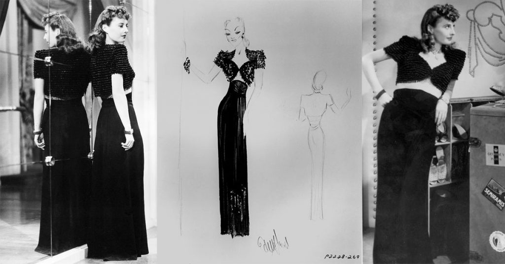 Barbara Stanwyck y figurín de Edith Head para «Las tres noches de Eva» (1957)