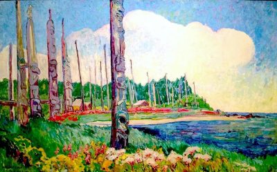 En 1899 visitó la misión indígena de Nootka en Ucluelet, en la costa oeste de la isla de Vancouver, también viajó a una colonia de arte rural en St. Ives, Cornualles, y regresó a la Columbia Británica en 1905. Seguramente por esas experiencias los temas principales tratados en su obra adulta fueron los nativos y la naturaleza: «Los tótems nativos situados en la profundidad del bosque o en aldeas nativas abandonadas» y, más tarde, «los largos ritmos de los bosques del Oeste, playas de maderas flotantes agitadas y amplios cielos». Carr homogeneizaba estos dos temas de una forma propia y única.