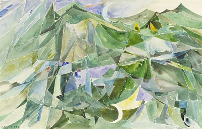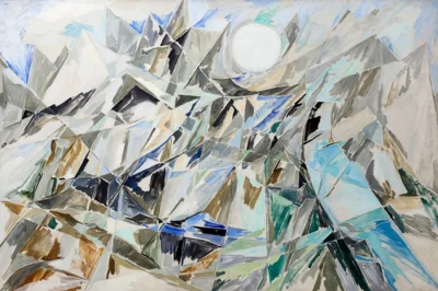 Basándose en un diálogo constante con la naturaleza y la creencia en el rico potencial del color, Else Alfelt creó su propia imaginería distintiva, donde la luz, las montañas, la luna y el sol se convirtieron en motivos recurrentes. A menudo, estos motivos se disuelven en movimientos cristalinos, mientras que líneas rectas y sinuosas rompen la superficie del cuadro.