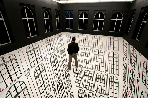 Regina Silveira trabaja con luces, sombras y distorsiones para explorar nociones de realidad a través de construcciones geométricas. Tiene preferencia por los juegos perceptivos y de continuidad en el espacio físico.