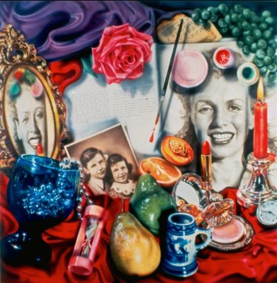 Un buen ejemplo es “Marilyn (Vanitas)” (1977), en la que aparece un libro abierto con una fotografía de Marilyn Monroe, junto a una serie de objetos como una rosa, frutas, una vela, un calendario, un espejo, un reloj de arena, un reloj de bolsillo, un vaso, una fotografía, perlas, botes de pintura, cosméticos y un paño arrugado. Los relojes y el calendario aluden al paso del tiempo, así como la descolorida fotografía, que se percibe anterior en el tiempo a la escena representada.